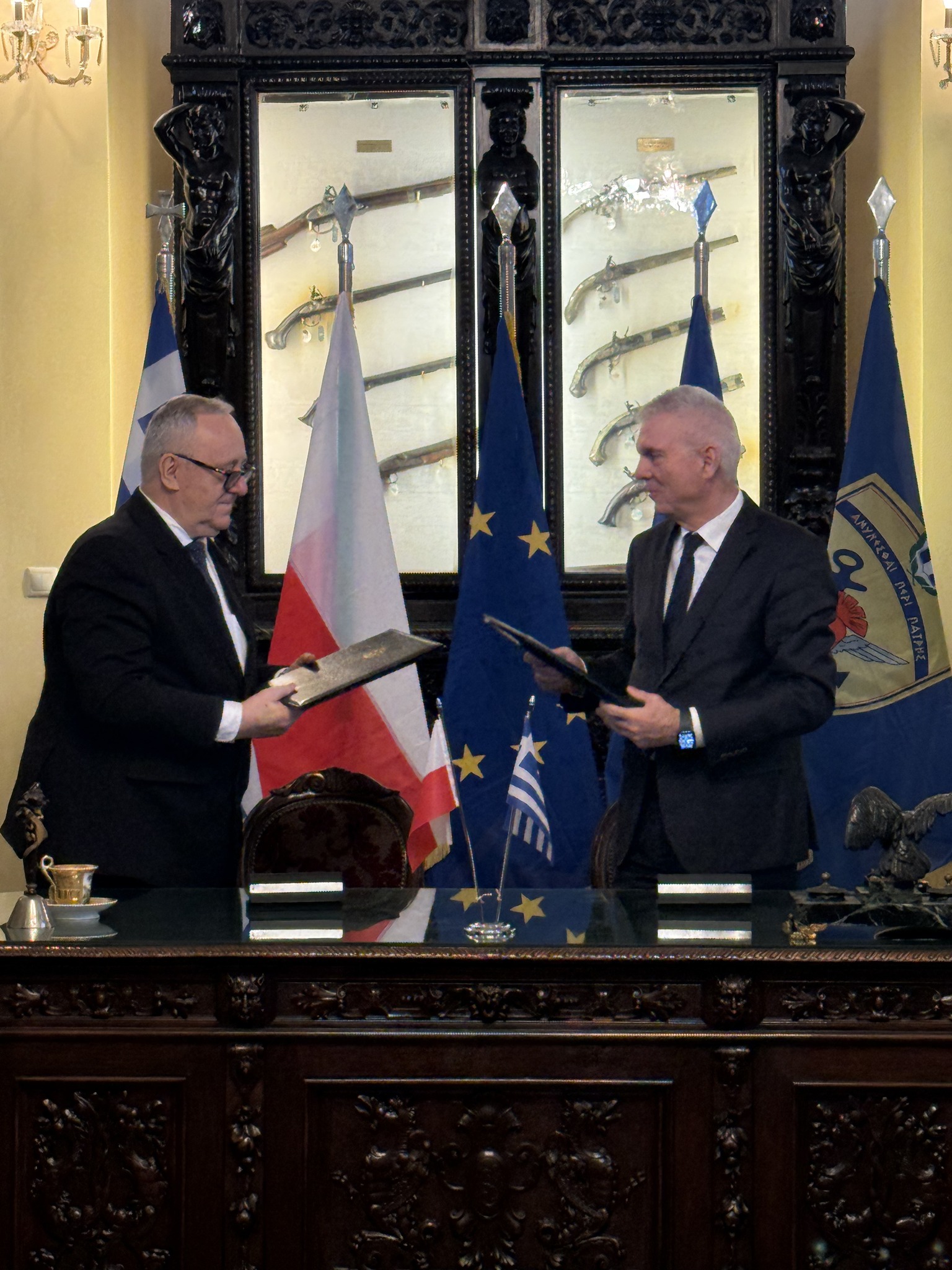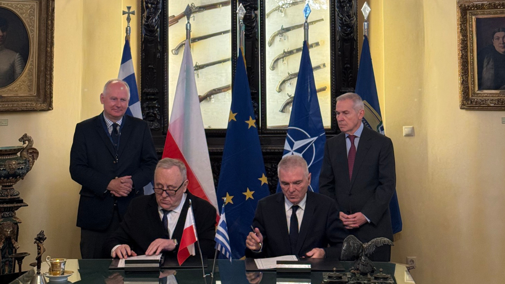 The ceremony was held at the Armed Forces Officers’ Club in Athens in the presence of the Deputy Minister of National Defence of Greece, Mr. Athanasios Davakis, and the Deputy Minister of National Defence of Poland, Mr. Paweł Zalewski. The Chairman of the Board of Directors of the War Museum, Vice Admiral (retired), Mr. Pawełewski, the Chairman of the Board of Directors of the War Museum, Mr. Pawełewski, the Chairman of the Board of Directors of the War Museum, Mr. Pawełewski. Konstantinos Karamesinis and the Director of the Military Museum of Poland, Major General (retired), Chairman of the Board of Directors of the War Museum of the War Museum of Poland, Major General (retired). Professor Bogusław Pacek, signed an agreement for the development of friendship and cooperation activities between the two institutions.